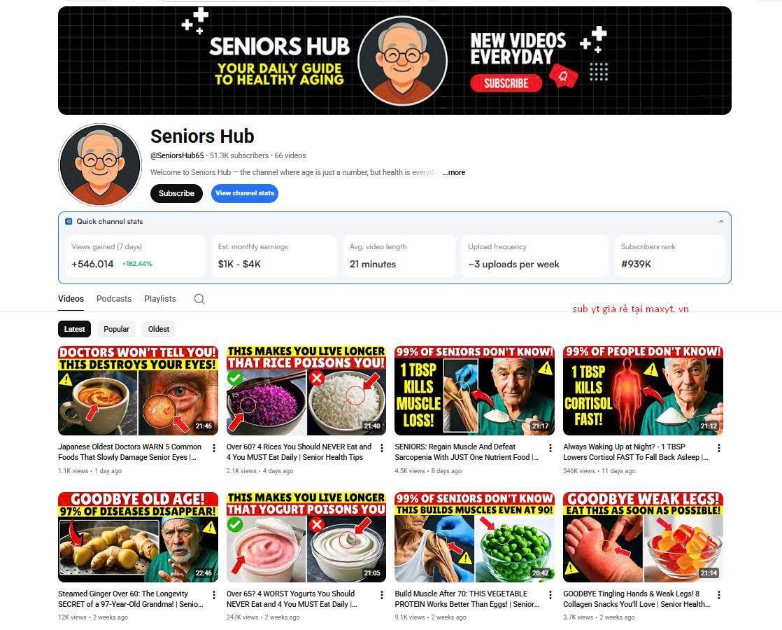 Case Study: Kênh Seniors Hub :  50,5K Subscribers | 65 Video | 3,96M Views Phân tích dưới góc nhìn của Huân Academy, anh em có thể học, thử, và n...