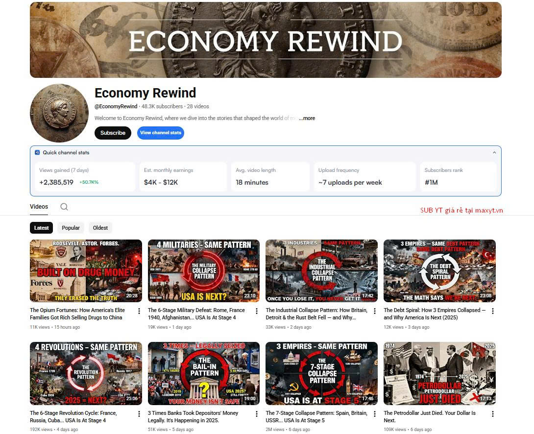 Case Study: Kênh Financial Historian với 72K Subscribers | 80 Video | 4.2M Views Đây là ngách storytelling - giáo dục - tri thức nhân loại, cực bền vữ...