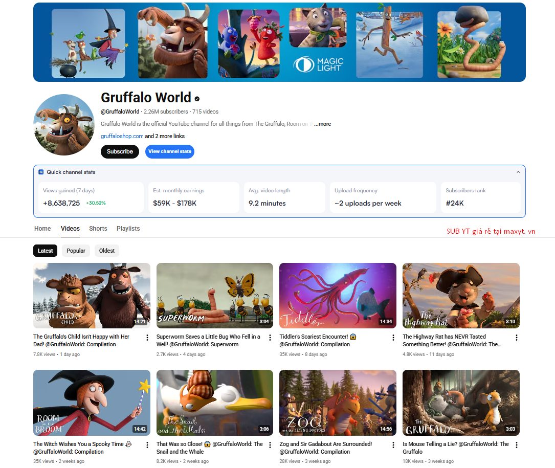 Gruffalo World là kênh YouTube chính thức của chuỗi phim hoạt hình The Gruffalo - thương hiệu trẻ em nổi tiếng thuộc Magic Light Pictures (Anh Quốc)....