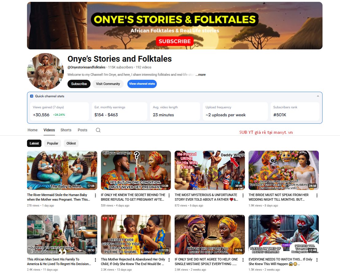 Kênh này đến từ Nigeria, chỉ mới thành lập từ tháng 2/2024, nhưng đã có 115.000 người đăng ký và gần 8 triệu lượt xem với gần 200 video. Không cần kỹ...