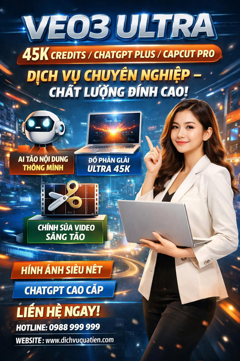 VEO3 ULTRA 45K Credits/ CHATGPT PLUS/ CAPCUT PRO  – Làm Video AI, Shorts, Reels Cực Mượt