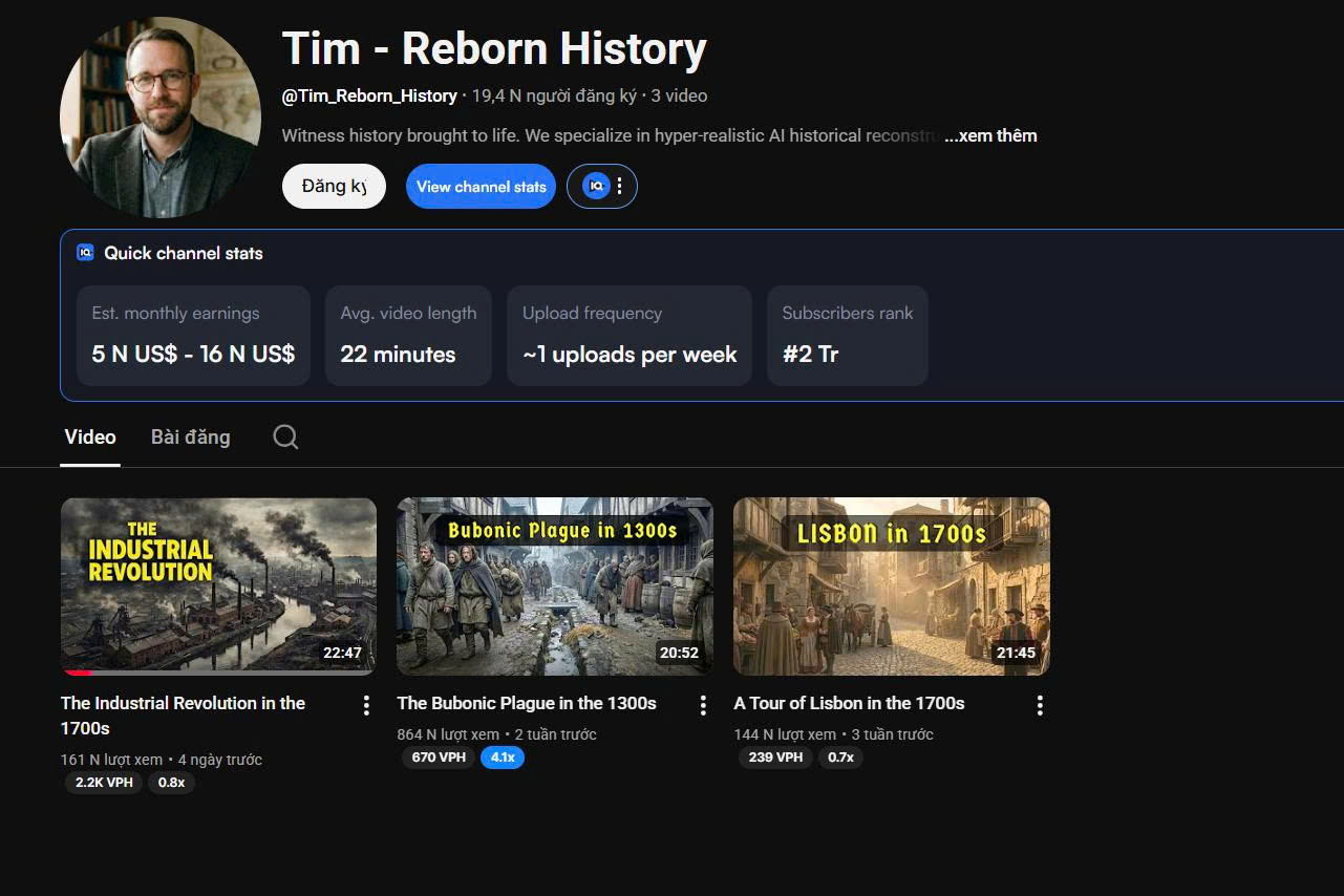 Cộng đồng YouTube AI – documentary đang chú ý đến kênh Tim – Reborn History khi kênh này chỉ mới có 3 video, nhưng đã thu hút gần 20.000 người đăng ký...