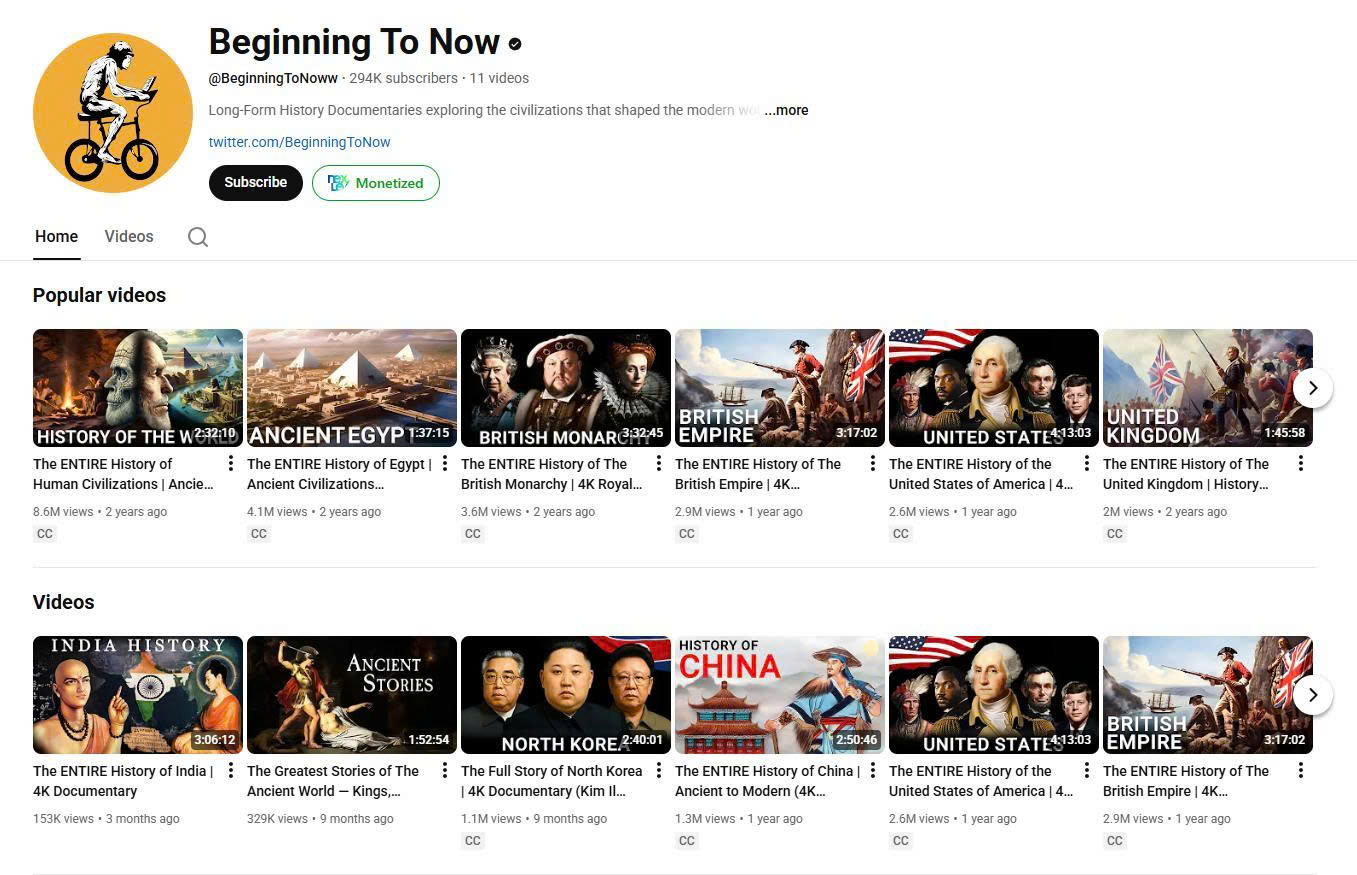 📚 “Beginning To Now” – Kênh lịch sử dài 3–4 tiếng vẫn đạt hàng triệu view