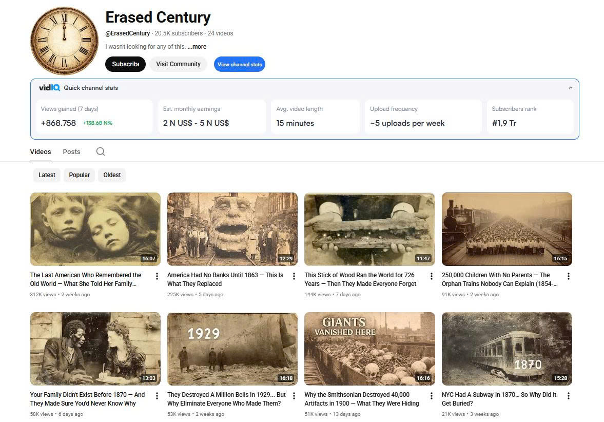 🕰️ Erased Century – Kênh YouTube “đào bới lịch sử bị lãng quên” đang hút hàng trăm nghìn view