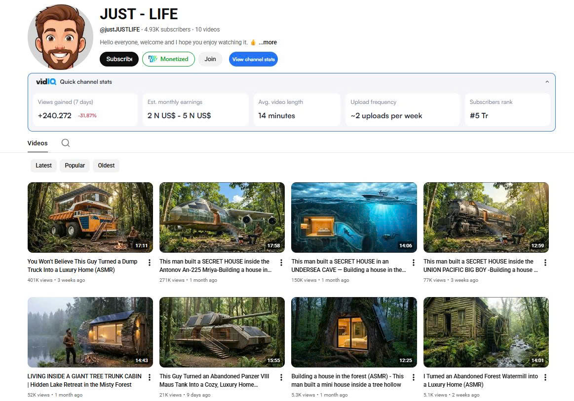 🔥 Kênh “JUST - LIFE” và công thức nội dung “Secret House” đang gây sốt YouTube