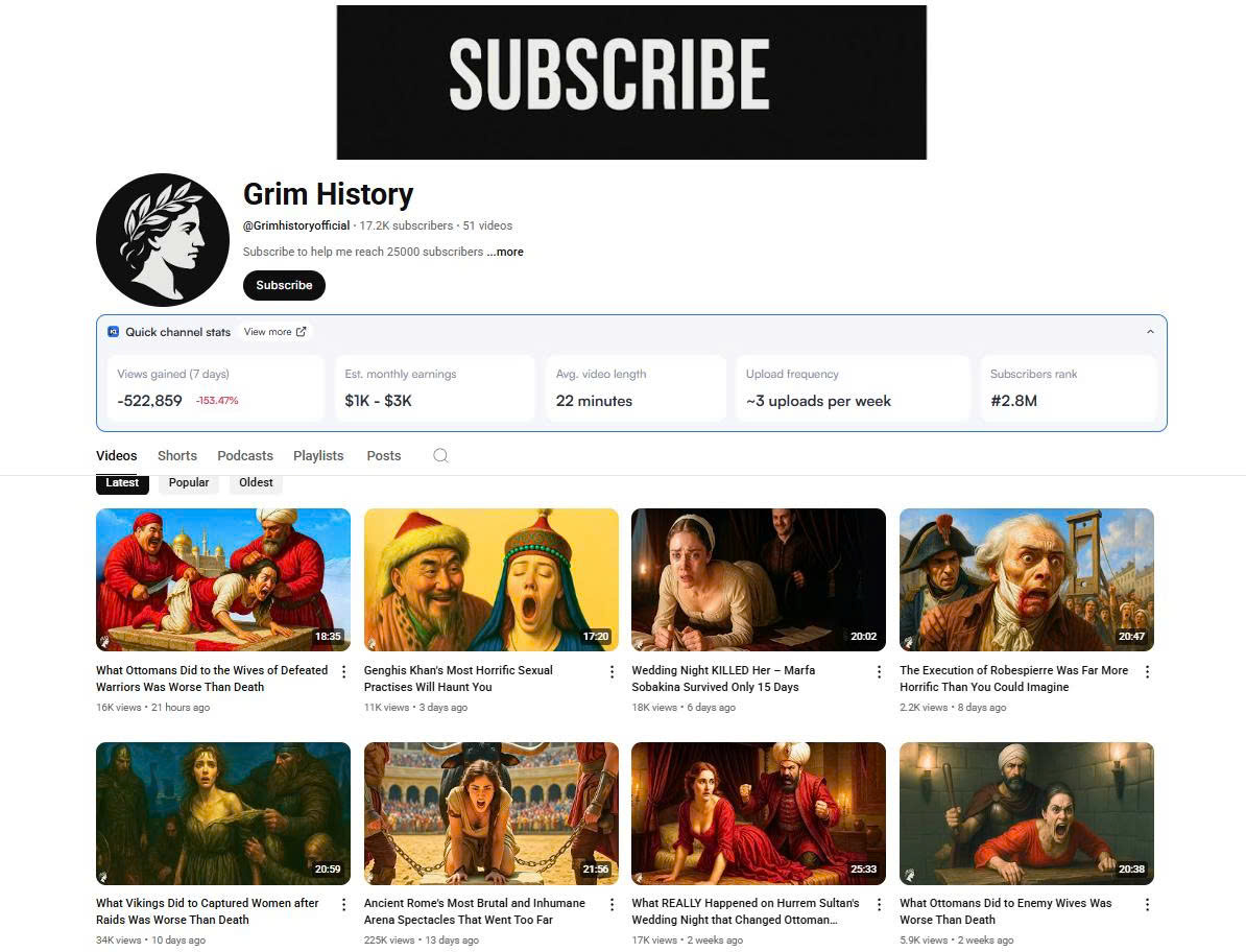 Hành động như một nhà biên kịch chuyên nghiệp, người hiểu sâu sắc về tâm lý học click của YouTube, những cái móc tò mò và cái ních Lịch sử Hắc ám.
