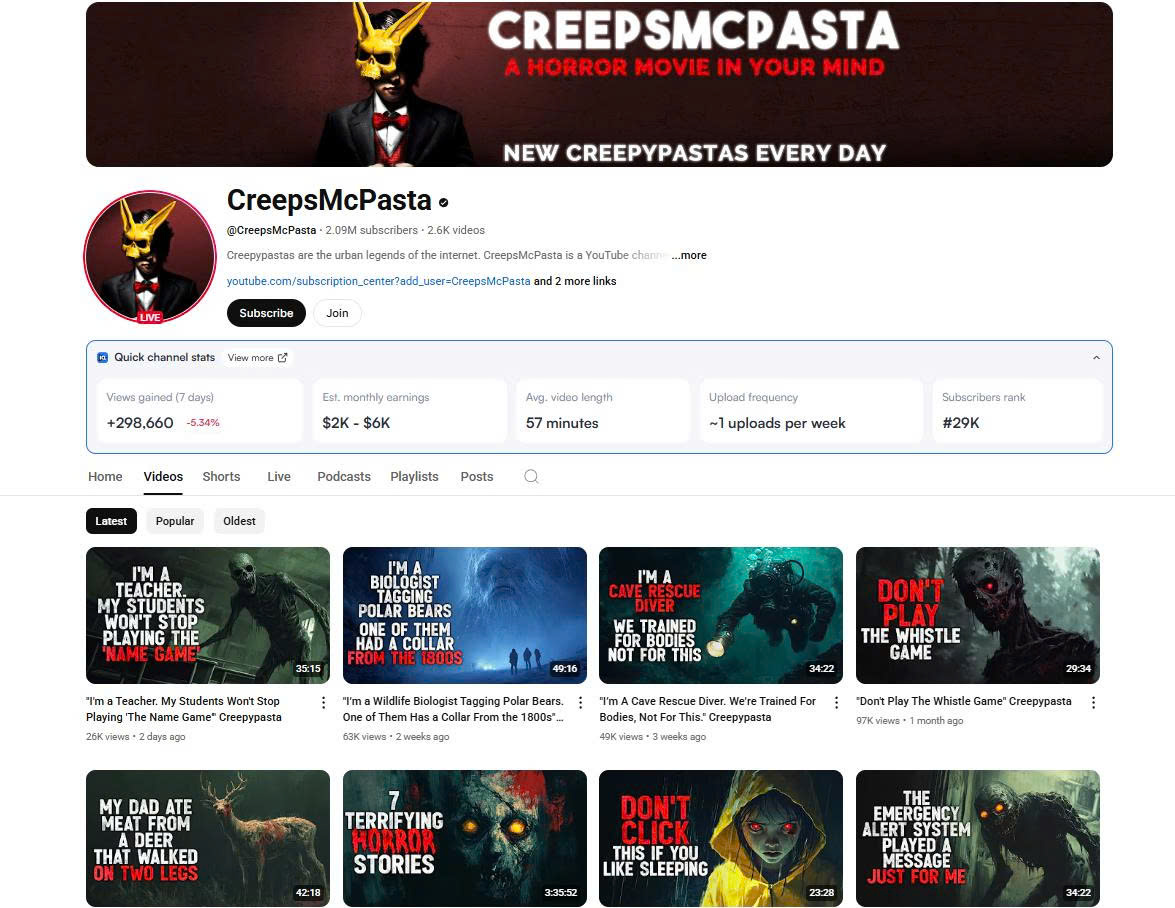 Giới thiệu Case Study: CreepsMcPasta không phải là một hiện tượng sớm nở tối tàn. Đó là một đế chế được xây dựng trong 13 năm, với hơn 2.600 video và 2,09 triệu người đăng ký.
