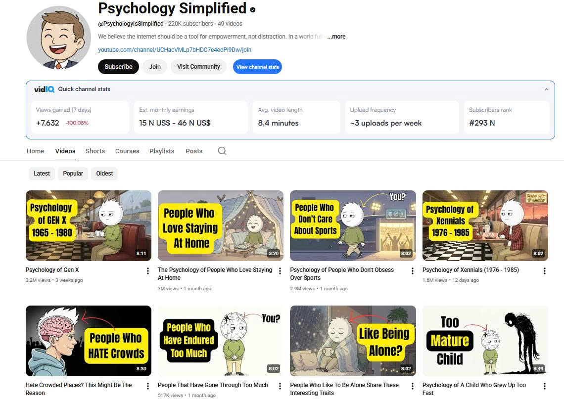 Trong bối cảnh nội dung self-help và tâm lý học bùng nổ mạnh trên YouTube, Psychology Simplified nổi lên như một case study đáng chú ý với mô hình cực kỳ rõ ràng: