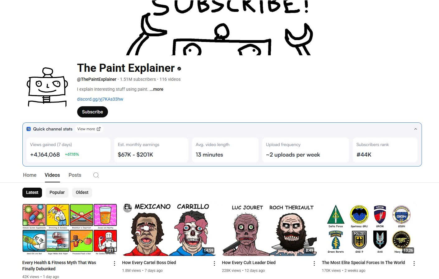 Kênh Paint Explainer chuyên tạo các video giải thích (explainer) về sự kiện lịch sử, các vụ tai nạn và tội phạm có thật. Điều làm kênh này thật sự khác biệt chính là sự đơn giản: Tất cả hình minh họa trong video đều được vẽ bằng Microsoft Paint.