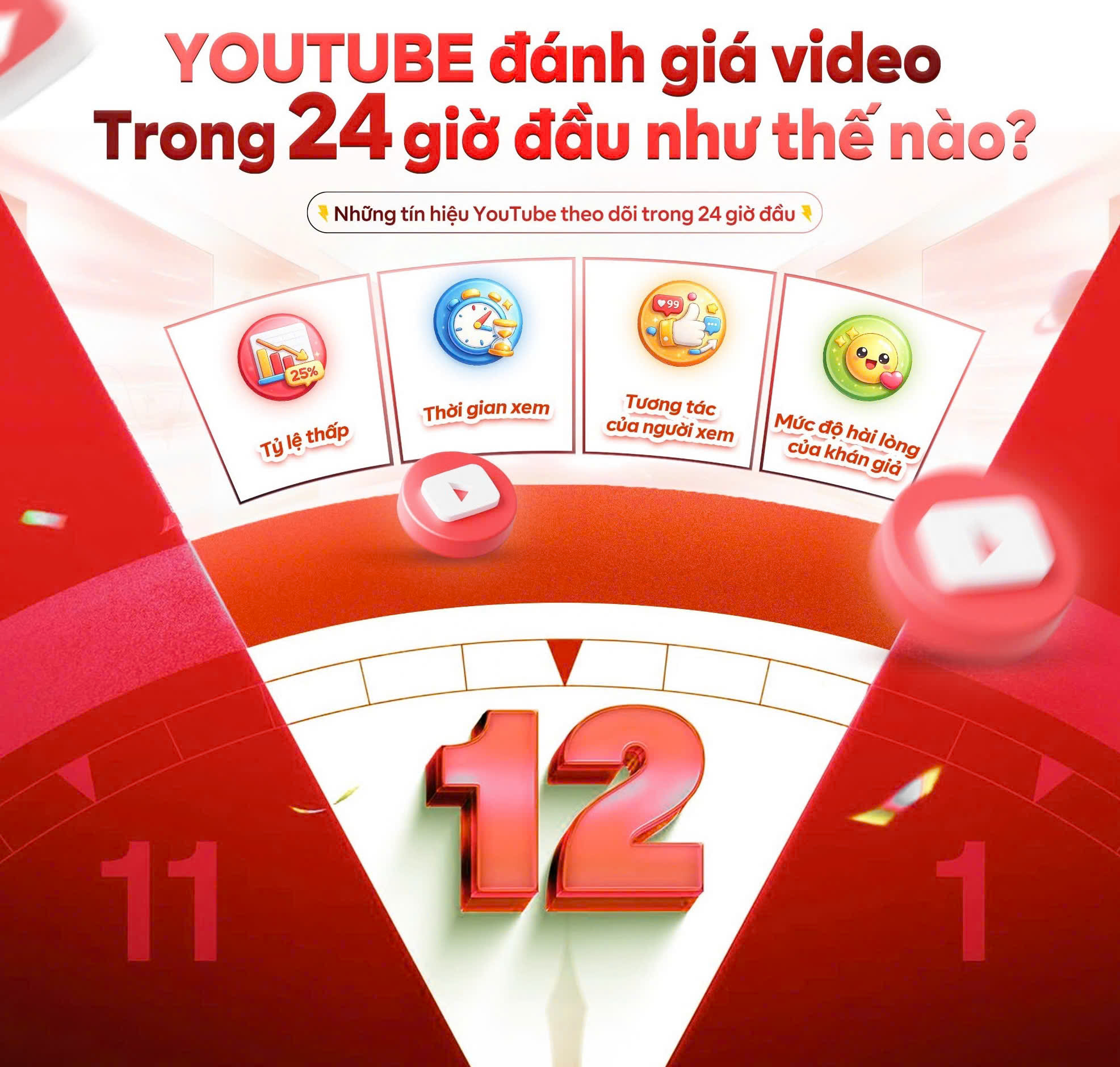 Trong 24 giờ đầu tiên sau khi đăng tải, YouTube sẽ tiến hành đánh giá hiệu suất video dựa trên nhiều chỉ số quan trọng. Đây là giai đoạn quyết định video của bạn có được đề xuất mạnh hay “chìm nghỉm”.