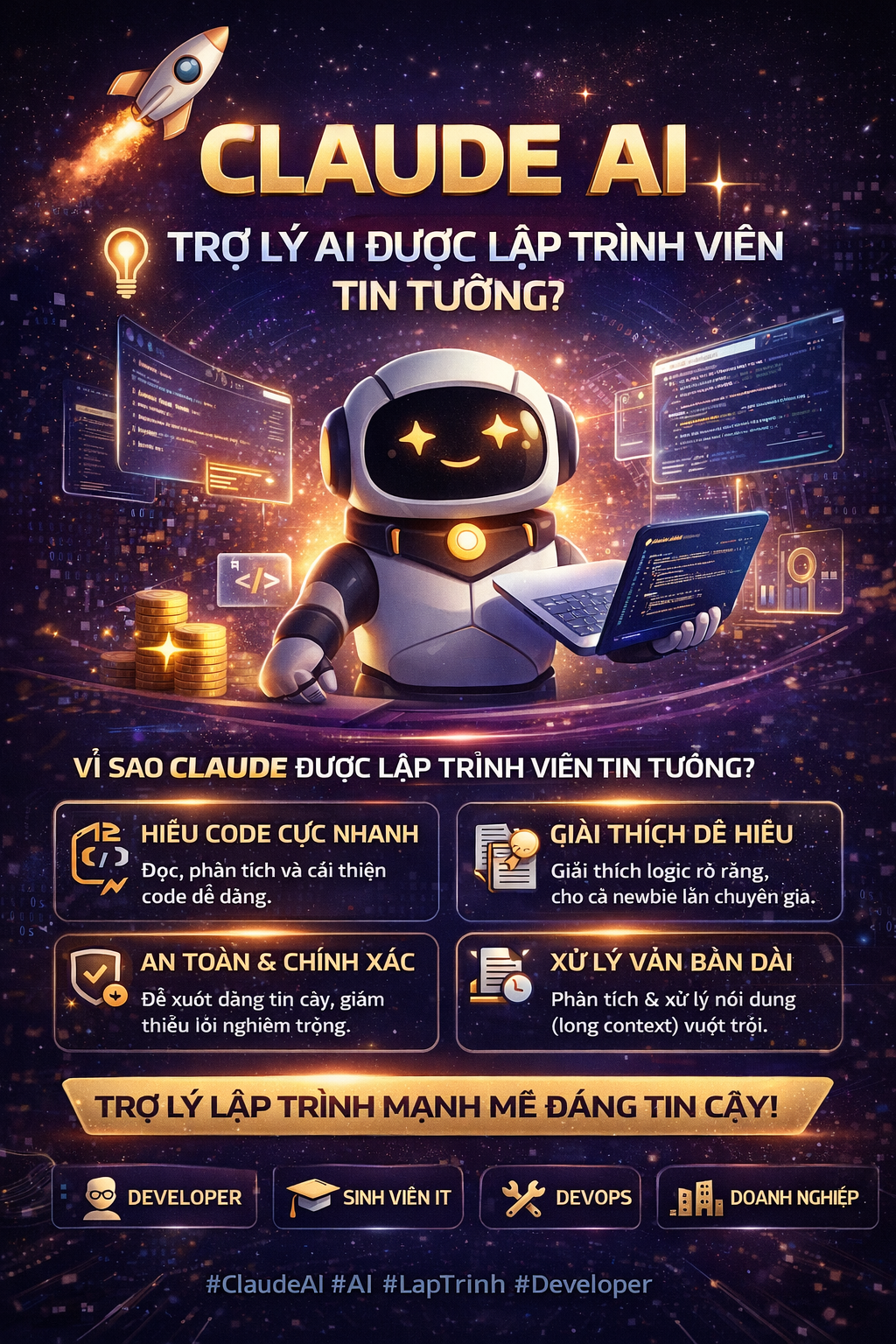 Trong thế giới công nghệ không ngừng phát triển, các công cụ trí tuệ nhân tạo đang trở thành “vũ khí bí mật” giúp lập trình viên và doanh nghiệp tăng tốc hiệu suất. Nổi bật trong số đó, Claude AI được đánh giá là một trong những AI mạnh mẽ, an toàn và đáng tin cậy nhất dành cho developer.