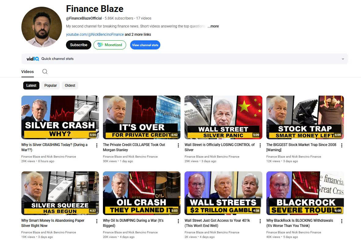 Một kênh YouTube chuyên chia sẻ tin tức tài chính và phân tích thị trường mang tên Finance Blaze đang thu hút sự quan tâm của cộng đồng đầu tư nhờ các video ngắn cập nhật những biến động lớn trên thị trường kinh tế toàn cầu.