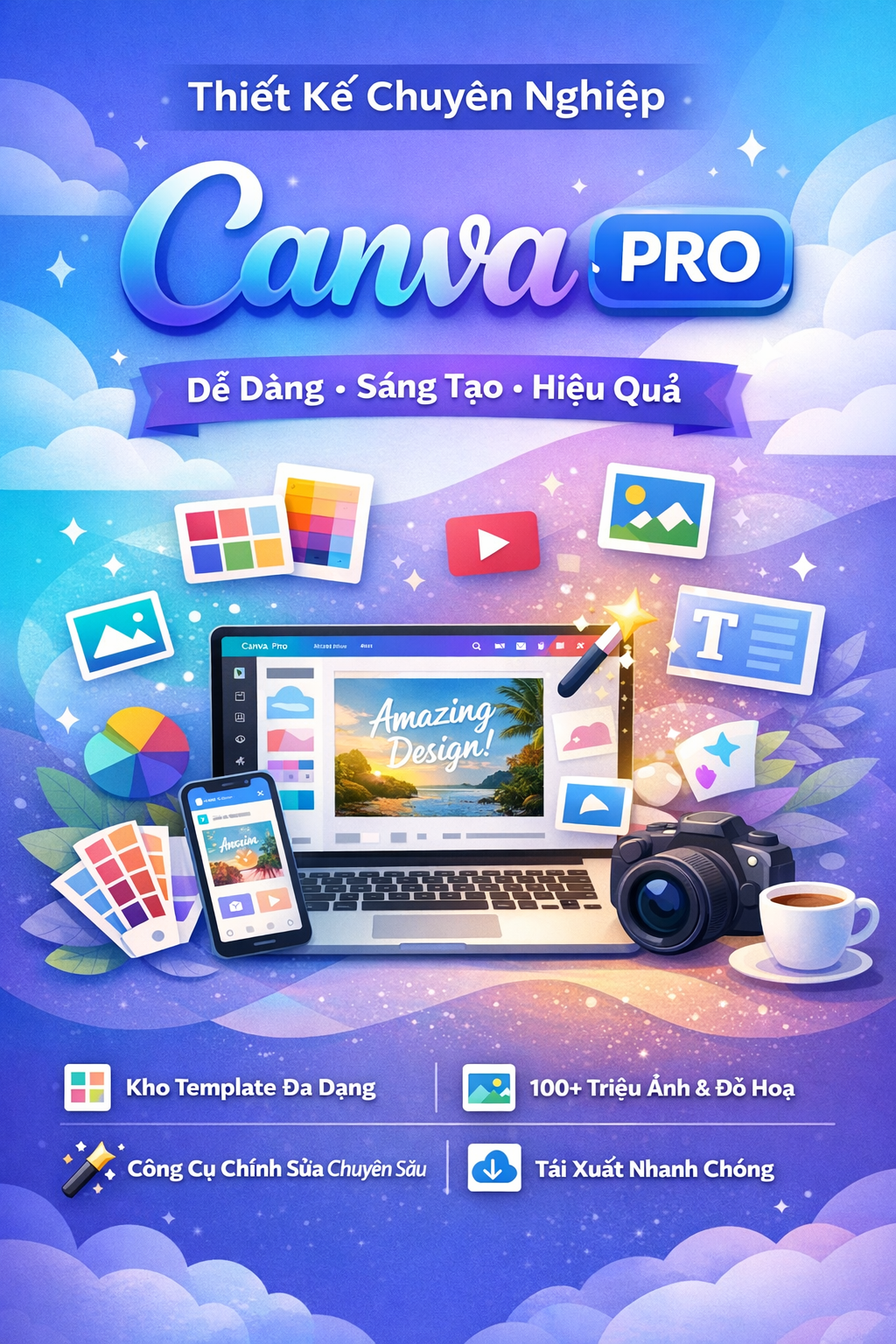 Canva Pro là công cụ thiết kế mạnh mẽ, dễ sử dụng và phù hợp với mọi đối tượng, đặc biệt là người mới bắt đầu.