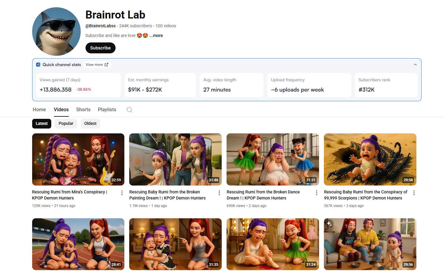 Video dạng này đánh trúng tâm lý của các bạn gen z đang thích các nhân vật trong phim KPOP demon hunters, cốt truyện đơn giản dễ hiểu thường là nhân vật chính dễ thương nhưng bị hãm hại và rồi cô được giúp đỡ và vươn lên, kể xấu bị trừng trị. Video kèm nhạc theo tiết tấu Brainrot nên càng dễ gây nghiện và thích nghe.