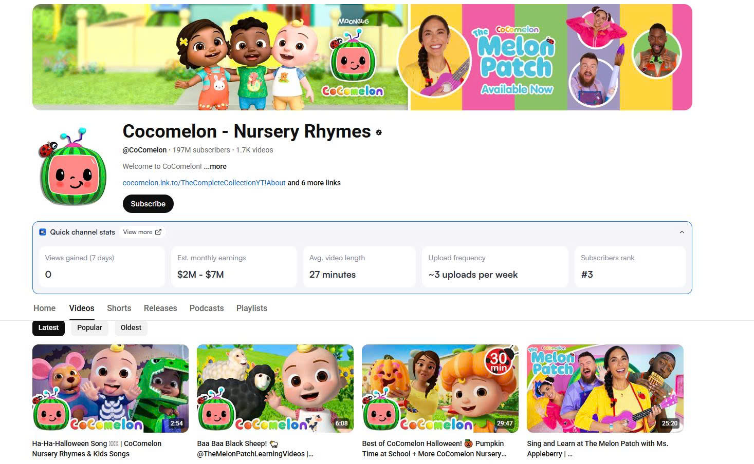 📷 Điển hình là Cocomelon - đế chế tỷ view với:
