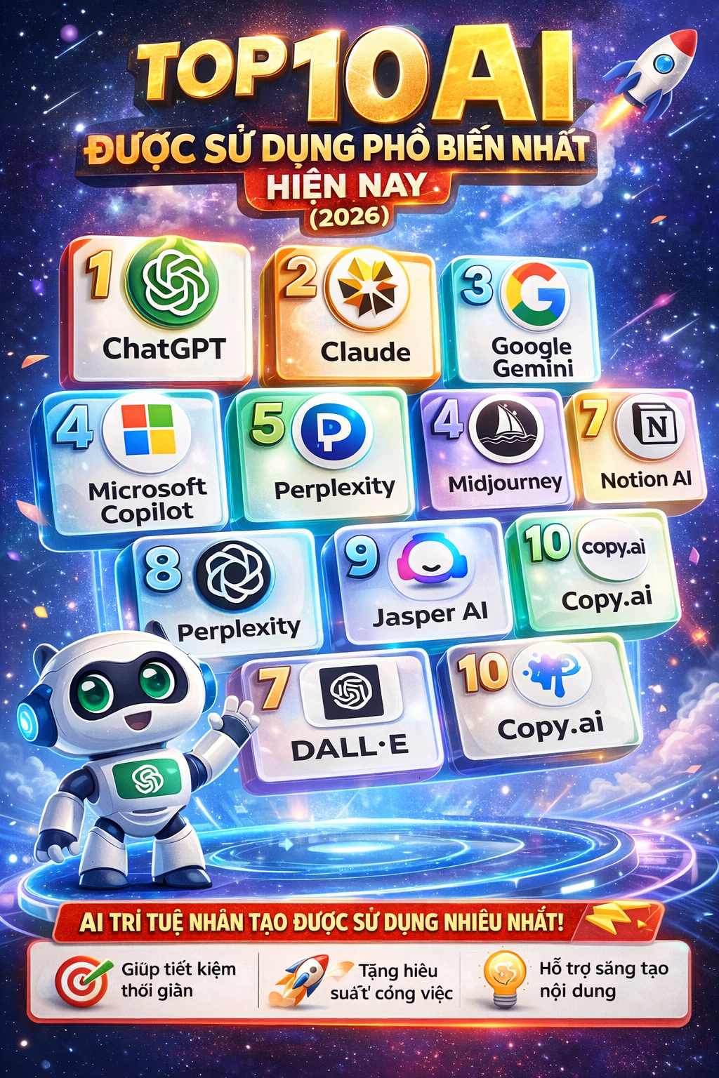Top 10 AI Được Sử Dụng Phổ Biến Nhất Hiện Nay (2026)