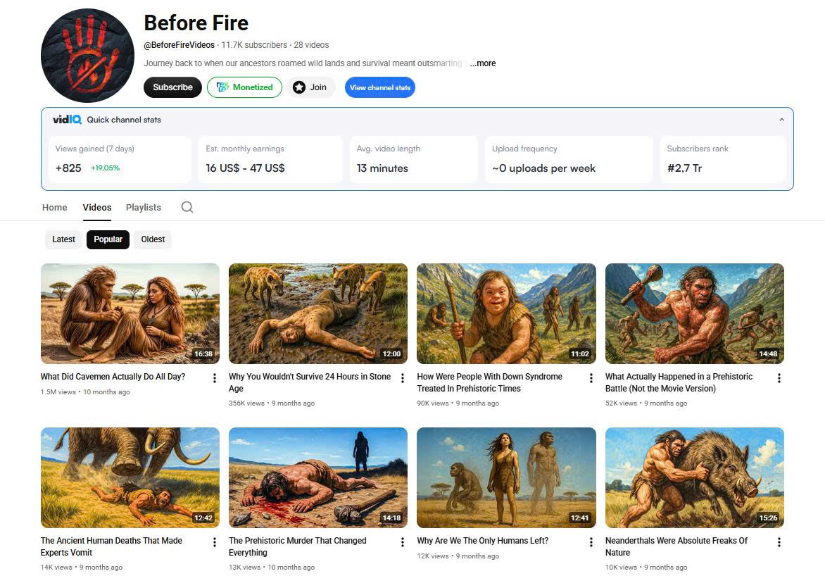 Kênh YouTube Before Fire đang thu hút sự chú ý với nội dung xoay quanh cuộc sống thời tiền sử, nơi con người phải sinh tồn trong điều kiện khắc nghiệt...