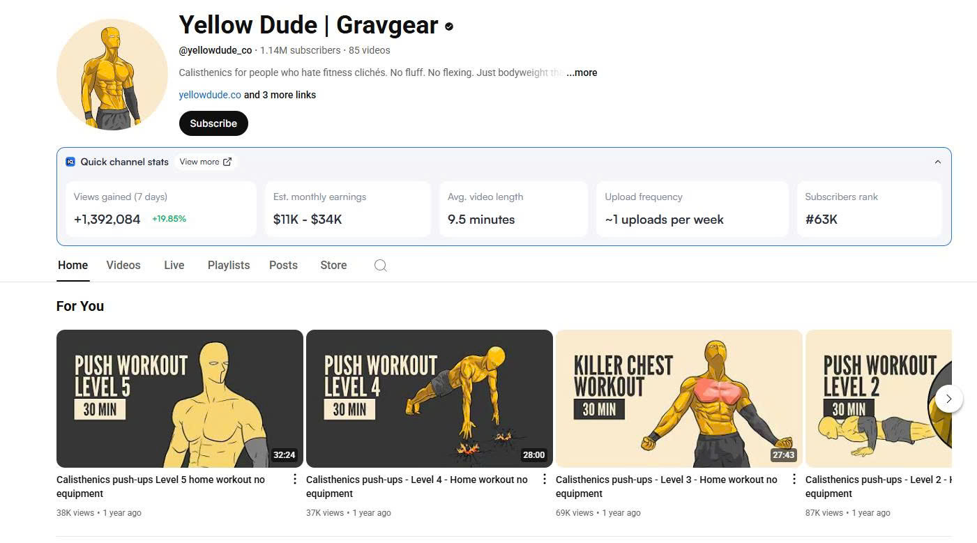 Kênh Yellow Dude | Gravgear- các bài tập thể hình với trọng lượng cơ thể tại nhà, không cần dụng cụ.