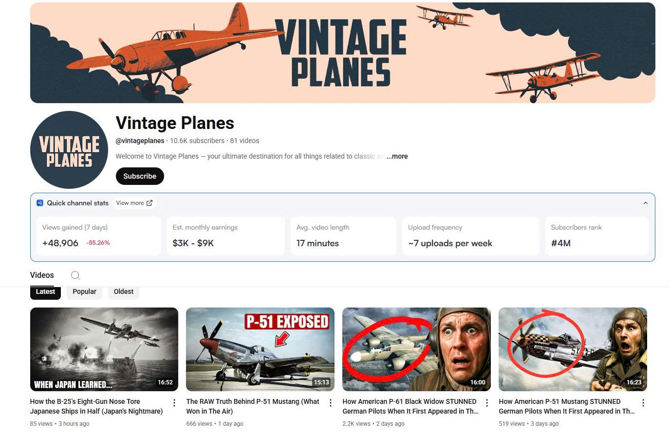 Kênh Vintage Planes - máy bay cổ điển và lịch sử hàng không quân sự,