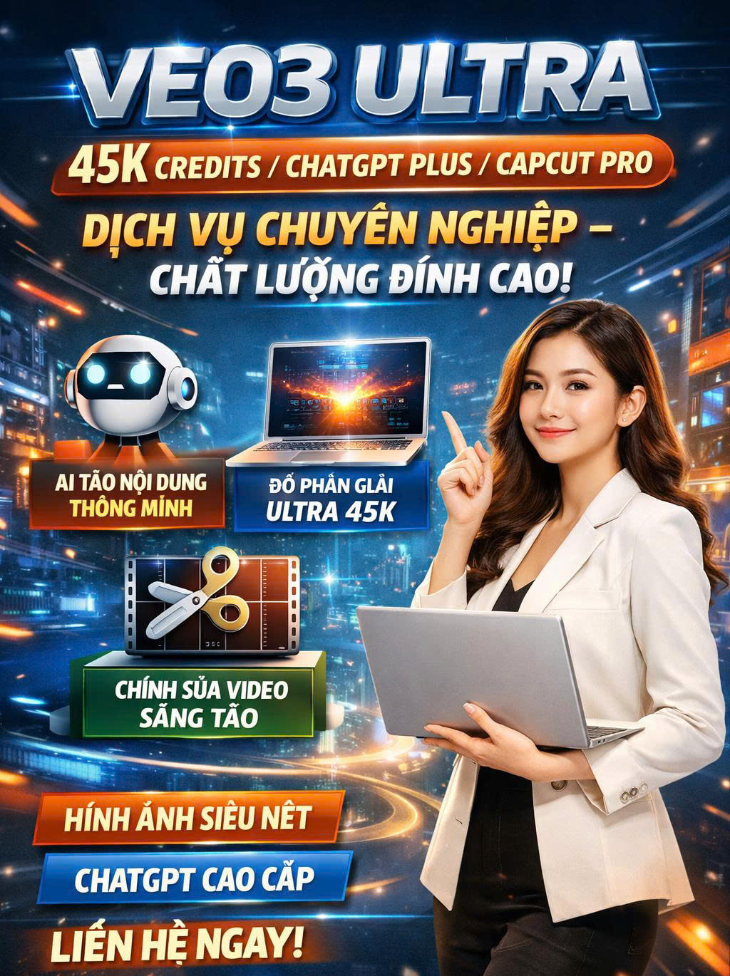 VEO3 ULTRA 45K Credits/ CHATGPT PLUS/ CAPCUT PRO  – Làm Video AI, Shorts, Reels Cực Mượt